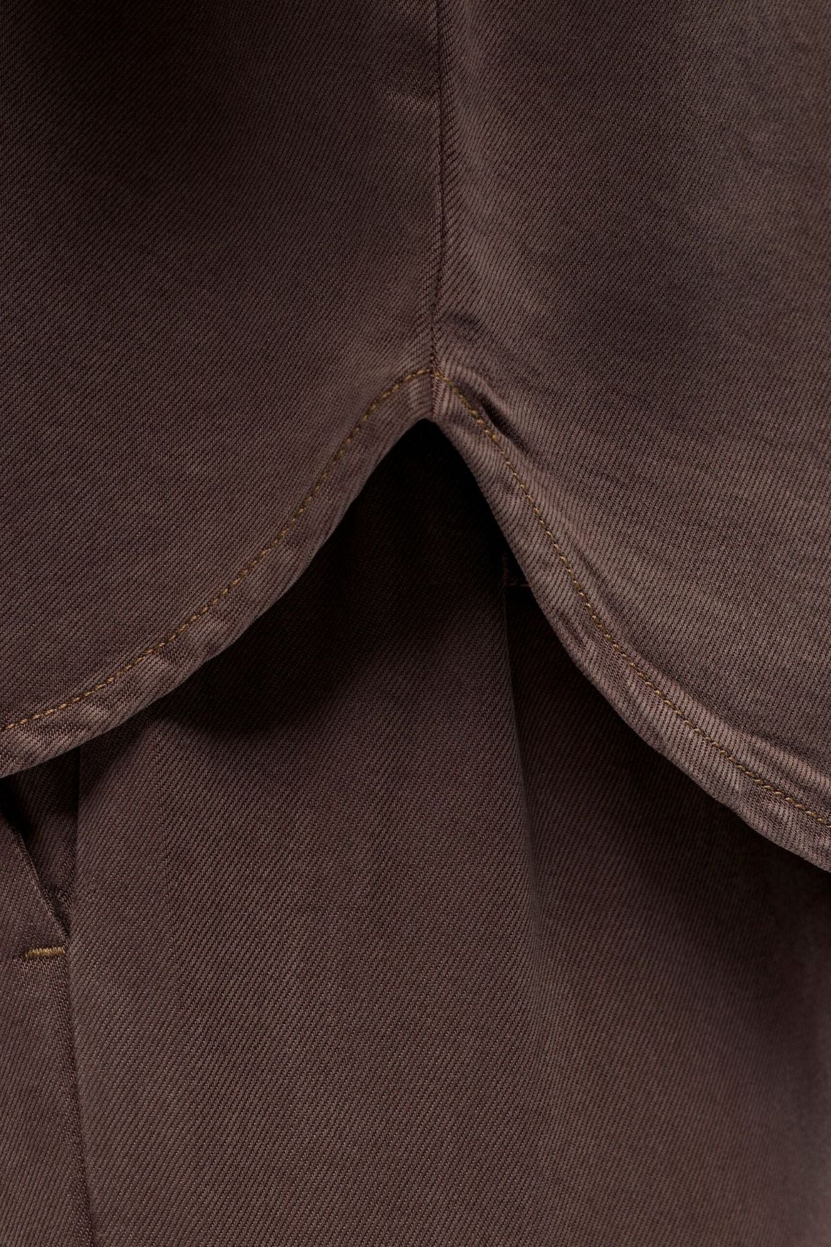 Die Schönheit dieses Stücks liegt in seiner Vielseitigkeit. Für ein koordiniertes und schickes Büro-Ensemble kombinieren Sie es mit maßgeschneiderten Pants und ein Paar Ballerinas mit spitzer Zehenpartie. Wenn Sie einen robusteren und dennoch raffinierteren Look bevorzugen, kreieren Sie ein raffiniertes Double-Denim-Outfit, indem Sie es mit Ihrem Favoriten kombinieren Jeans. Die Farbe Seal Brown bietet eine erfrischende Alternative zu traditionellem blauem Denim und ermöglicht es Ihnen, mit subtilem Selbstvertrauen hervorzustechen. Ergänzen Sie es mit Goldschmuck, um die warmen Töne des Seal Brown-Stoffs hervorzuheben.