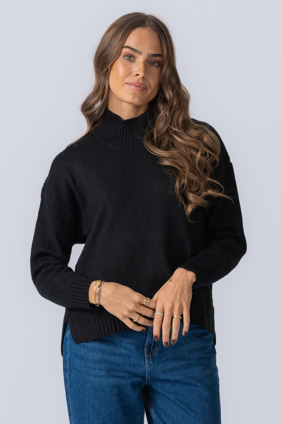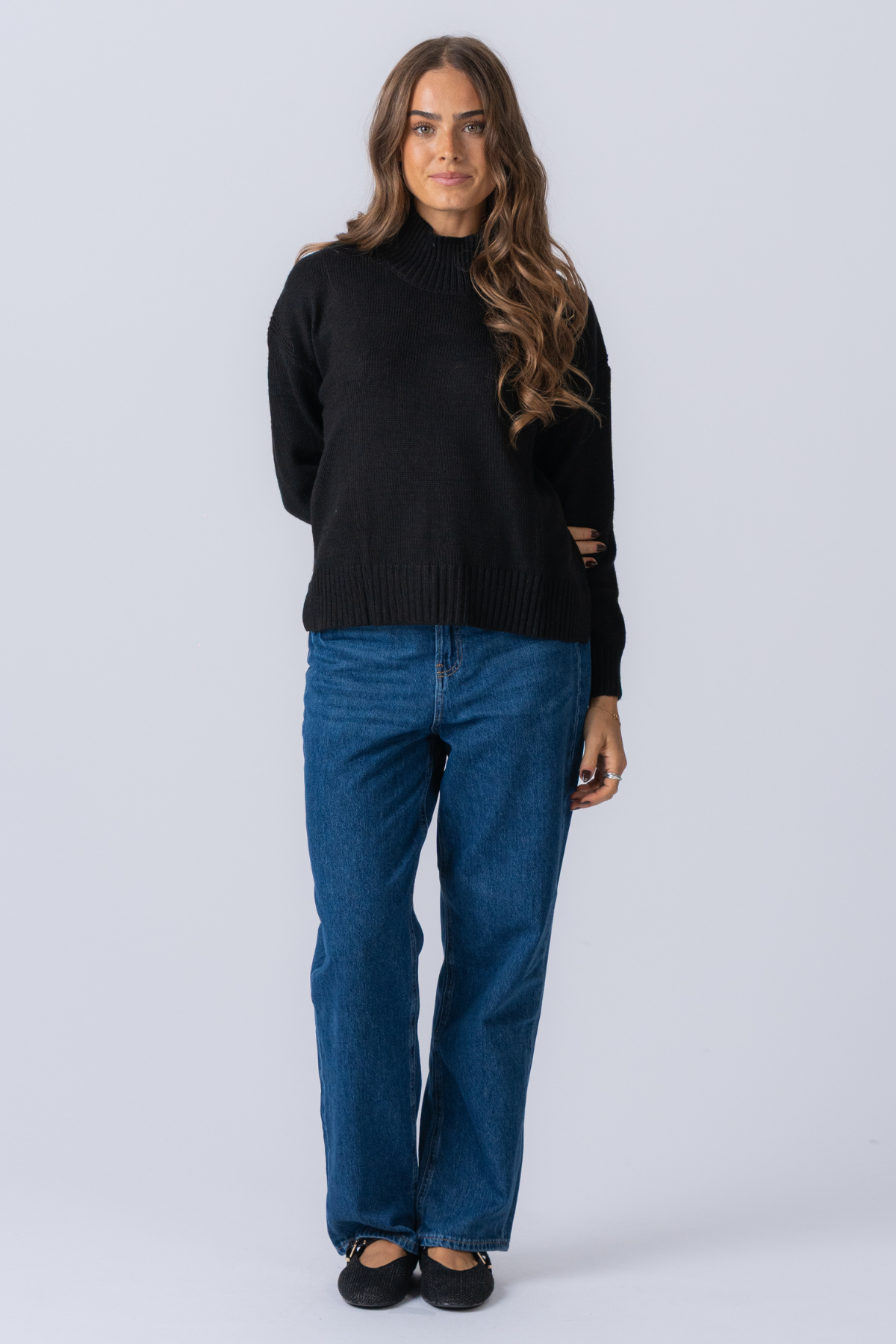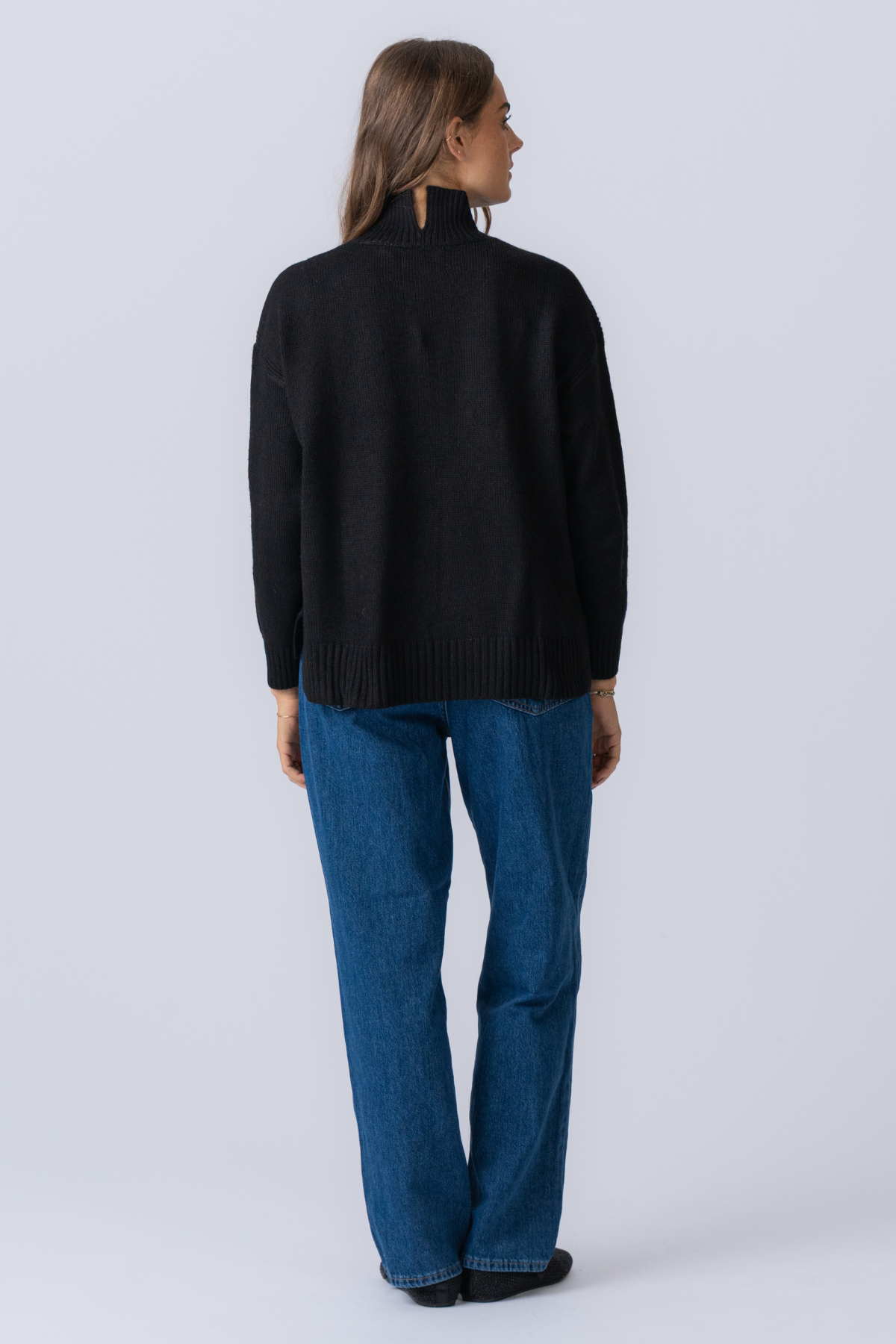 Oversized Strickpolo -Hals -Jumper - Schwarz
