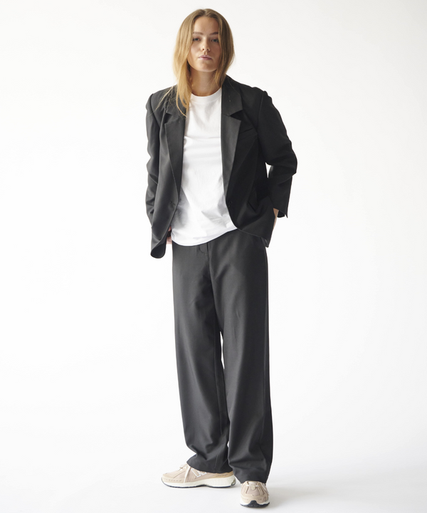 Beim Kreieren des perfekten Looks mit einem Damen's oversized Anzug liegt das Geheimnis in der Einfachheit der Details. Geben Sie die ein basic T-Shirt – Ihr ultimativer Schlüssel zu elegantem Stil. Das Zusammenspiel des Strukturierten oversized Anzug und den entspannten Charme eines basic T-Shirt schafft ein zartes Gleichgewicht und verbindet Eleganz nahtlos mit lässigem Charme.