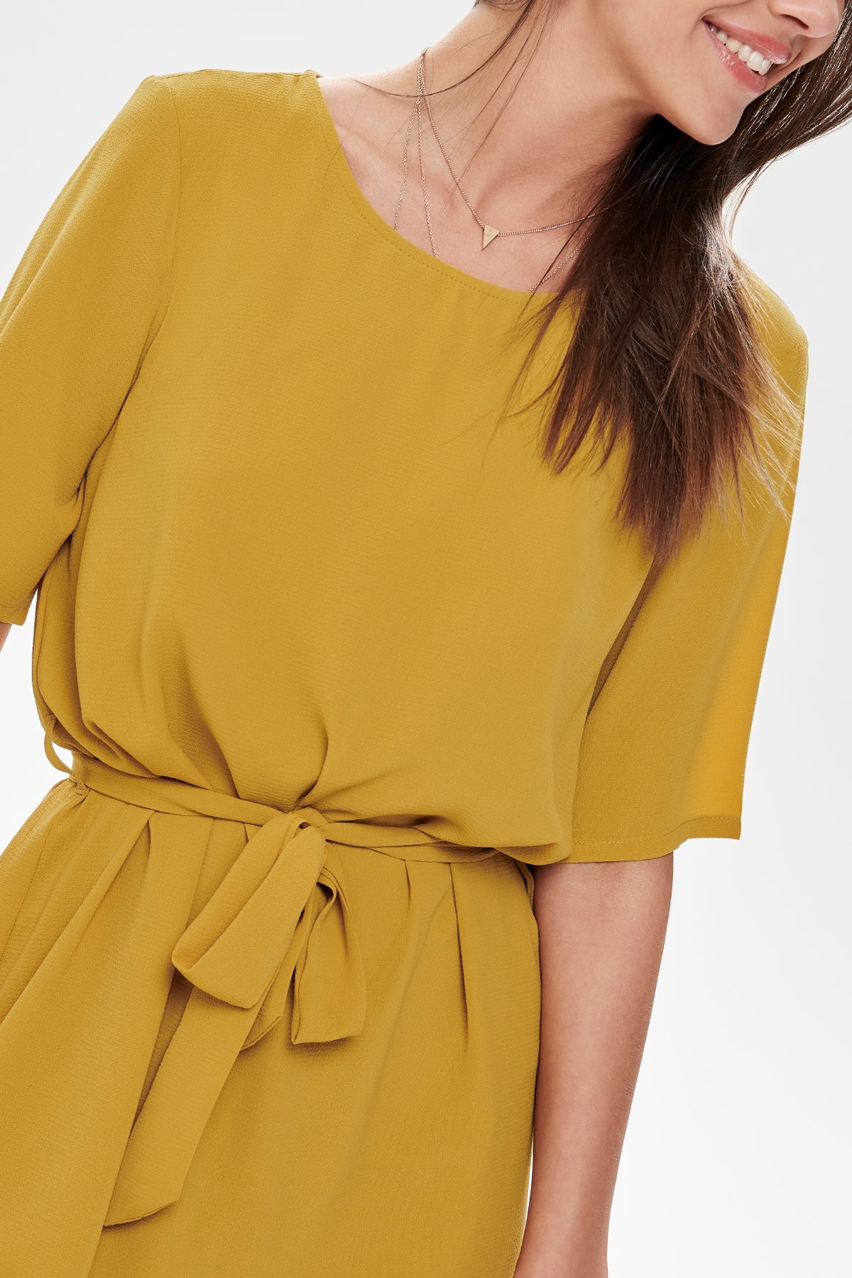 Lernen Sie Ihr neues Lieblingsoutfit kennen: das Amanda Belted Dress von JDY, präsentiert in einem atemberaubenden Harvest Gold. Das ist nicht nur ein Kleid; es's ein Statement für Selbstvertrauen und schicke Schlichtheit, entworfen für die moderne Frau, die sowohl Stil als auch Komfort schätzt. Stellen Sie sich den warmen, goldenen Farbton vor, der Ihren Teint erhellt und alle Blicke auf sich zieht, egal ob Sie das Büro betreten oder sich mit Freunden zum Brunch treffen. Das Amanda-Kleid ist Ihre Geheimwaffe für einen eleganten Look, der sich genauso gut anfühlt, wie er aussieht.