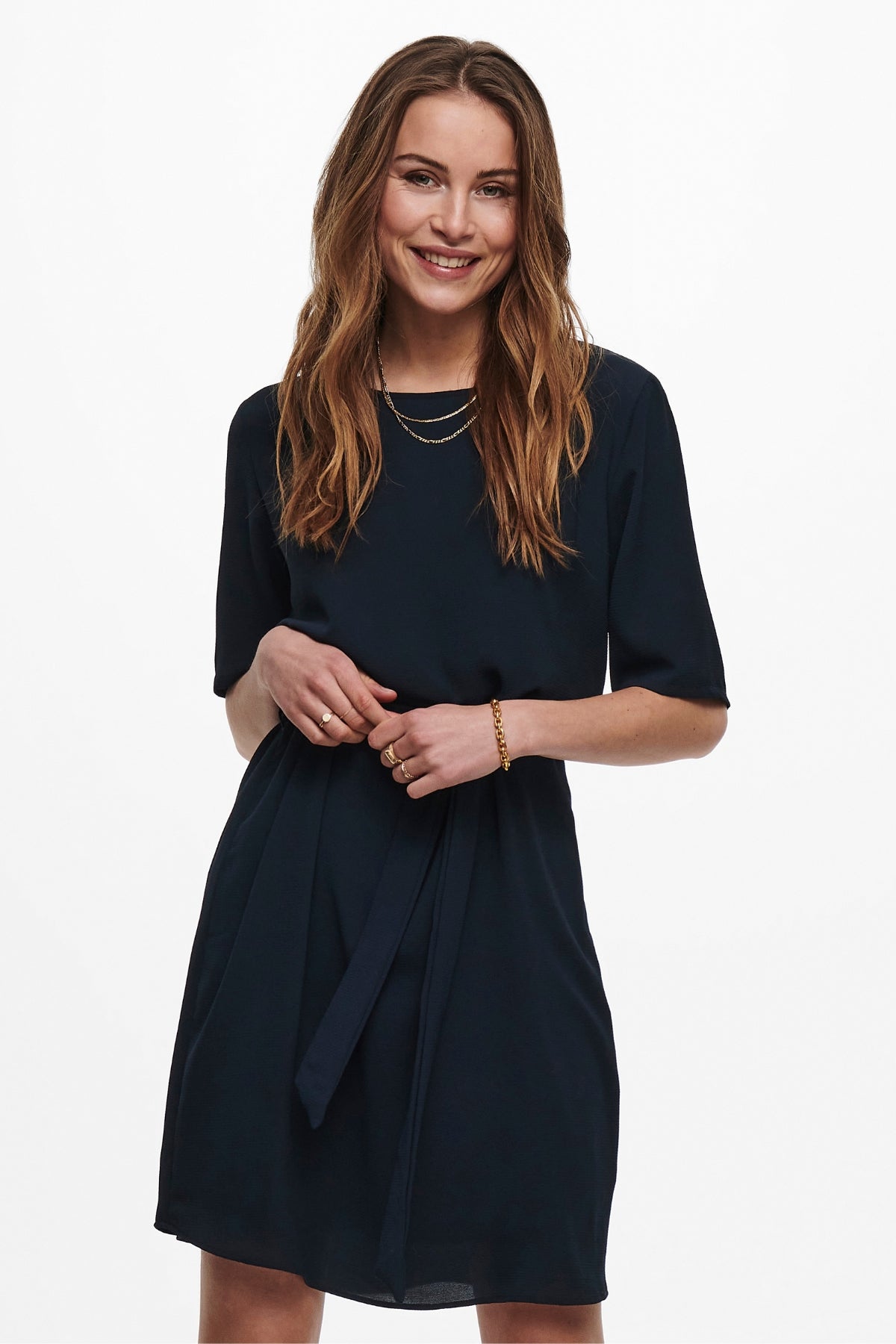 Stellen Sie sich ein Kleid vor, das jedes Dilemma, was Sie anziehen sollen, mit makelloser Anmut löst. Das Amanda Belt Dress von JDY ist genau das Richtige. Dieses in einem tiefen, zeitlosen Marineblau drapierte Kleid ist Ihre neue Geheimwaffe, um bei jedem Anlass sofort gut auszusehen. Es’s mehr als nur Kleidung; es’s Ein Selbstvertrauensschub für die moderne Frau, die sowohl Stil als auch Einfachheit schätzt.