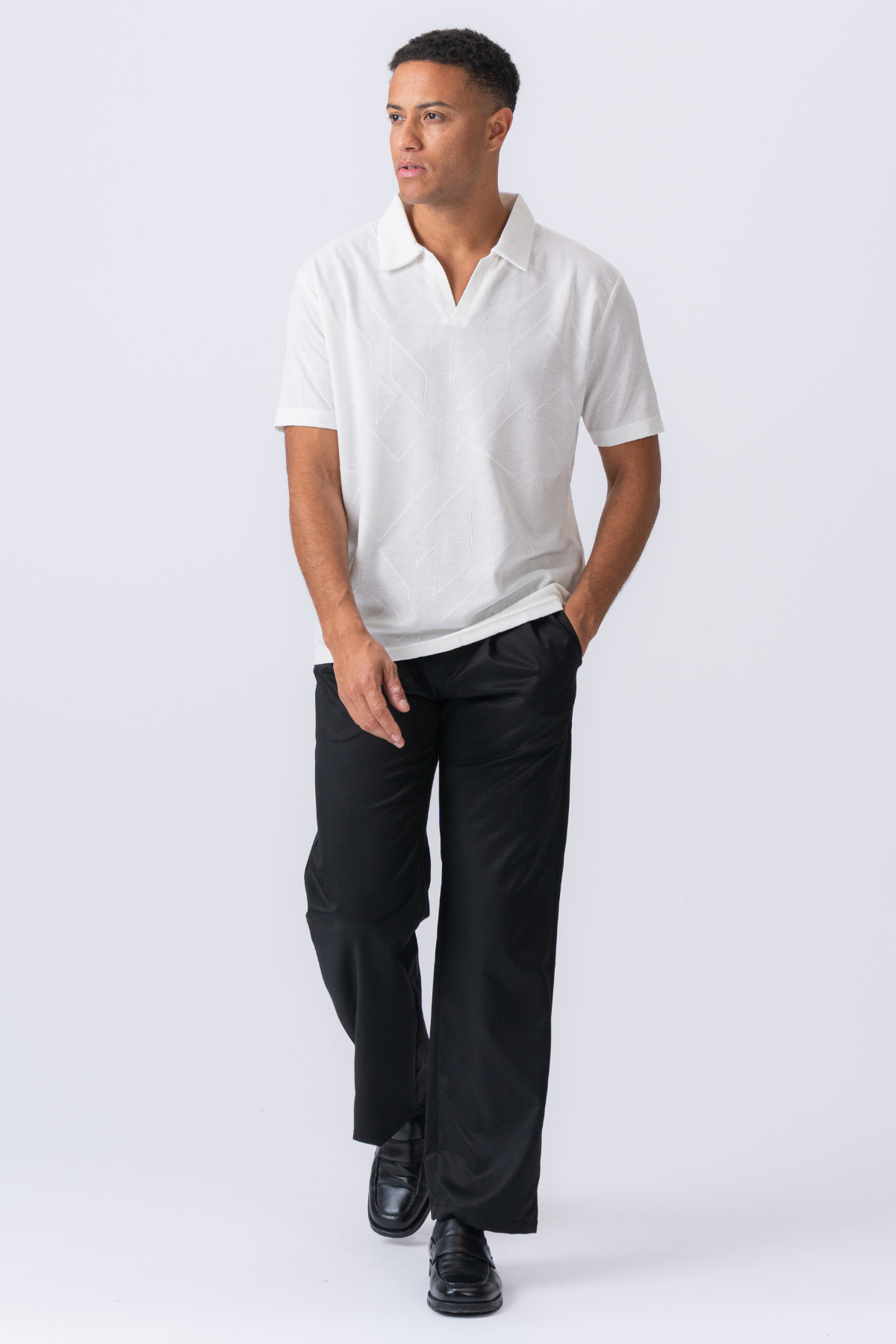 Was den Atlas Polo auszeichnet, ist das markante strukturierte Gewebe. Es's Ein subtiles, ausgefeiltes Detail, das dem knusprigen weißen Stoff Tiefe und Dimension verleiht, das Licht fängt und das Auge zeichnet. Dies ist kein lautes Muster; Es's Eine ruhige Aussage von Qualität und Liebe zum Detail. Die reiche Textur erhöht das gesamte Kleidungsstück und verwandelt es von einem einfachen Grundnahrungsmittel in ein Premium -Stück, das sich so gut anfühlt, wie es aussieht. Es's Die Art von Hemd, die Komplimente verdient und Sie sich zuversichtlich fühlen, sobald Sie es anziehen.