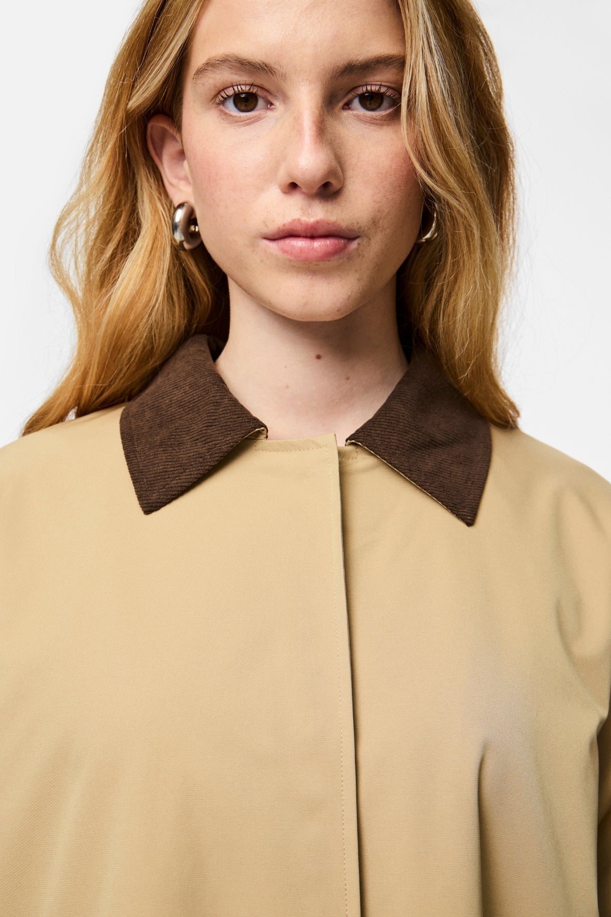 Diese Jacke besteht aus einer durchdachten Materialmischung, darunter 51 % recyceltes Polyester, und stellt einen Schritt in eine nachhaltigere Zukunft dar. Der Stoff fühlt sich glatt auf der Haut an und bietet eine hervorragende Haltbarkeit, sodass Ihre Investition Saison für Saison hält. Die Farbgebung Travertine Hot Fudge bietet ein atemberaubendes Beige, das zu jedem Outfit passt und es zu einer vielseitigen Ergänzung Ihrer Capsule-Garderobe macht.