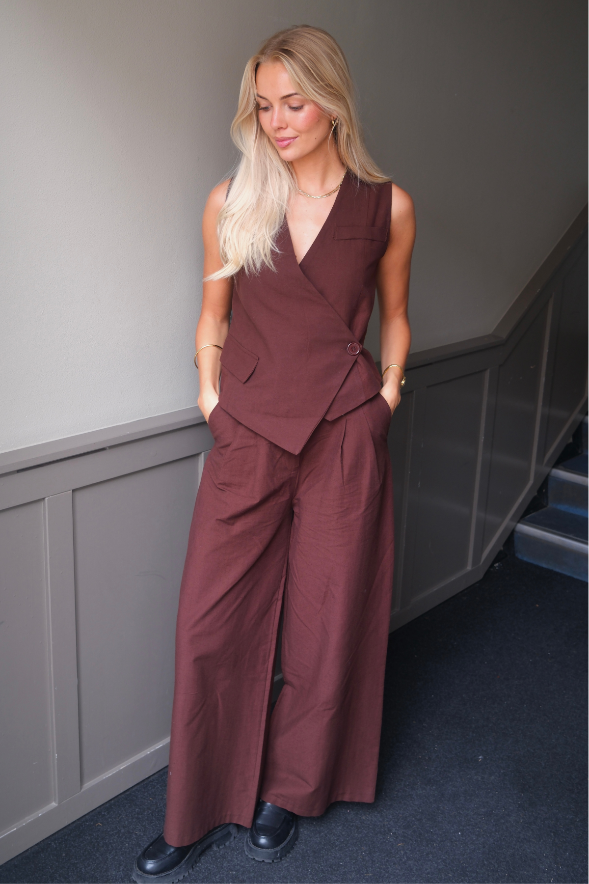 Treffen Sie die Melissa -Weste von TeeShoppen - Das ultimative Schichtstück, das das klassische Design meisterhaft mit moderner Sensibilität verbindet. Diese Weste wurde für die anspruchsvolle Frau entwickelt, die sowohl Stil als auch Substanz schätzt, und ist mehr als nur ein Accessoire. Es ist eine Erklärung zur mühelosen Eleganz. In einem reichhaltigen, vielseitigen Brown verspricht die Melissa-Weste, der fleißigste und beliebteste Artikel in Ihrer Sammlung zu sein, der nahtlos von professionellen Umgebungen zu entspannten Wochenendausflügen wechselt.