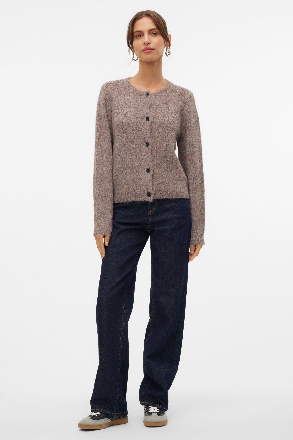 Novah O-Neck Button Cardi – Brown Lentil Melange