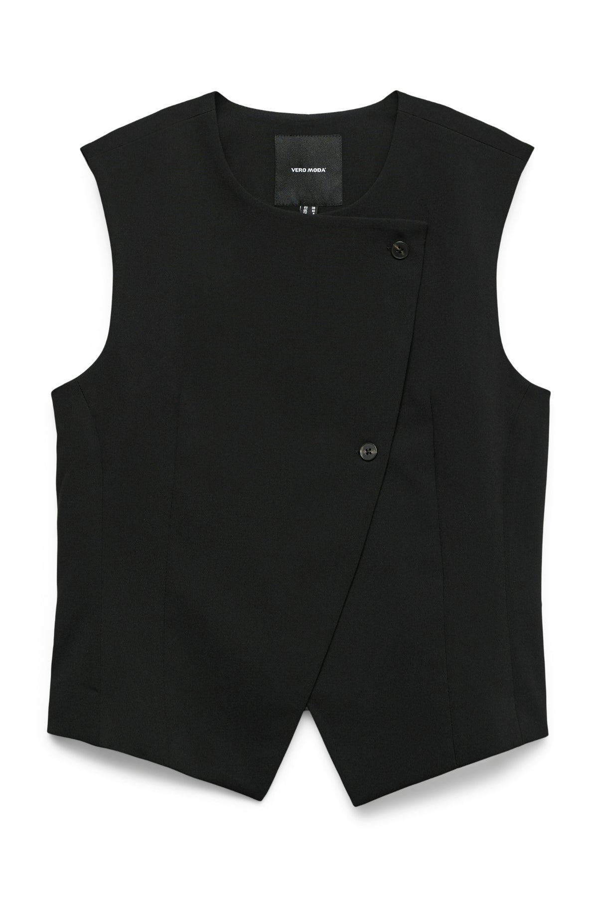 Lernen Sie die Geheimwaffe kennen, mit der Sie jedem Outfit sofort das gewisse Etwas verleihen können: die Philine-Weste von Vero Moda. In einem zeitlosen, kraftvollen Schwarz, das ist nicht nur ein Kleidungsstück; Es's ein Statement für Raffinesse und modernen Stil, entworfen für die Frau, die ihren Look beherrscht.