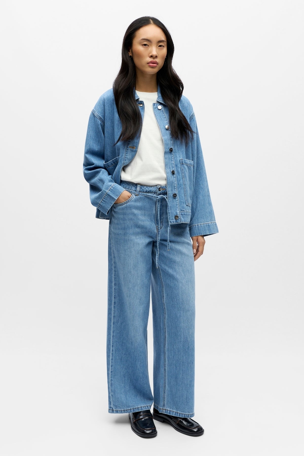 - Zeitlose hellblaue Waschung: Ein klassischer Denim-Farbton, der als vielseitige Grundlage für unzählige Outfits dient.
