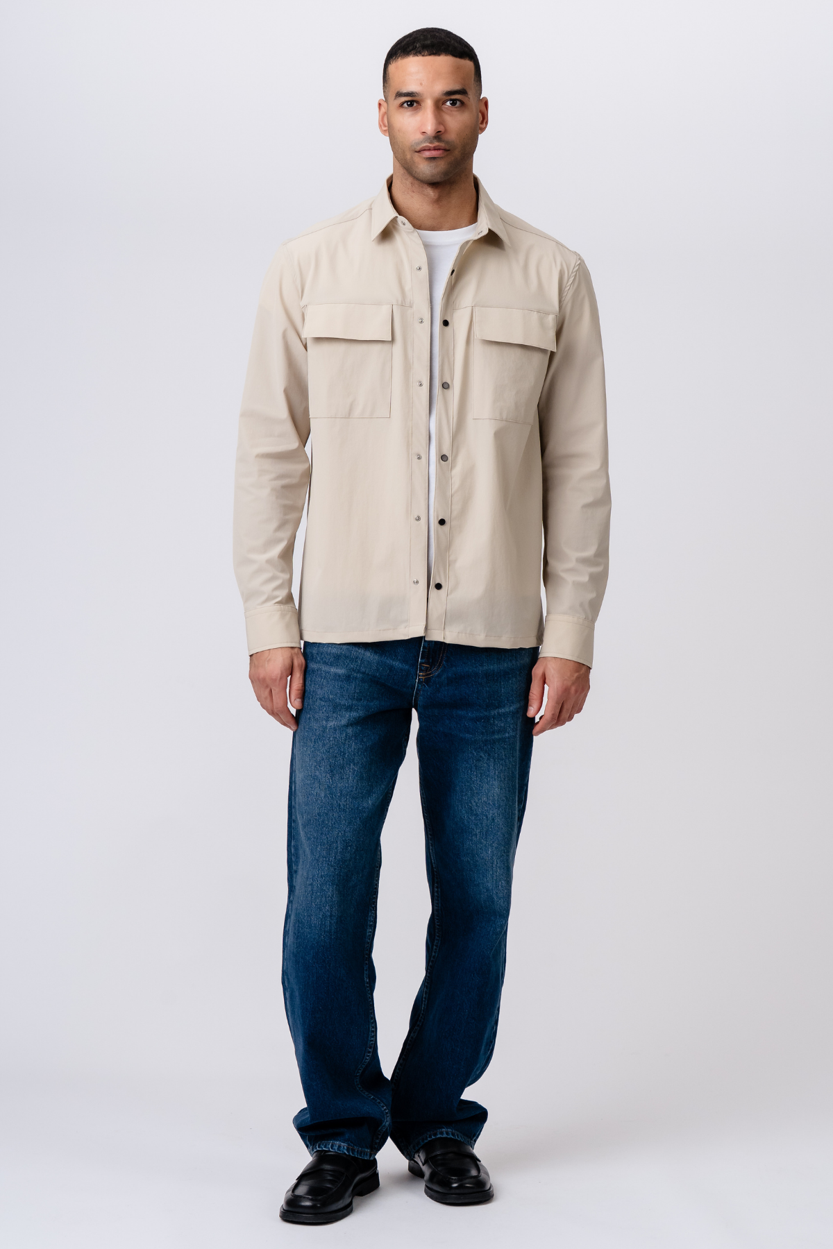 Die wahre Stärke des Silas Overshirt liegt in seiner Fähigkeit, sich jeder Situation anzupassen. Die neutrale beige Farbgebung dient als perfekte Leinwand für Ihren persönlichen Stil. Kleiden Sie es mit Leichtigkeit elegant oder leger; Die Möglichkeiten sind endlos.