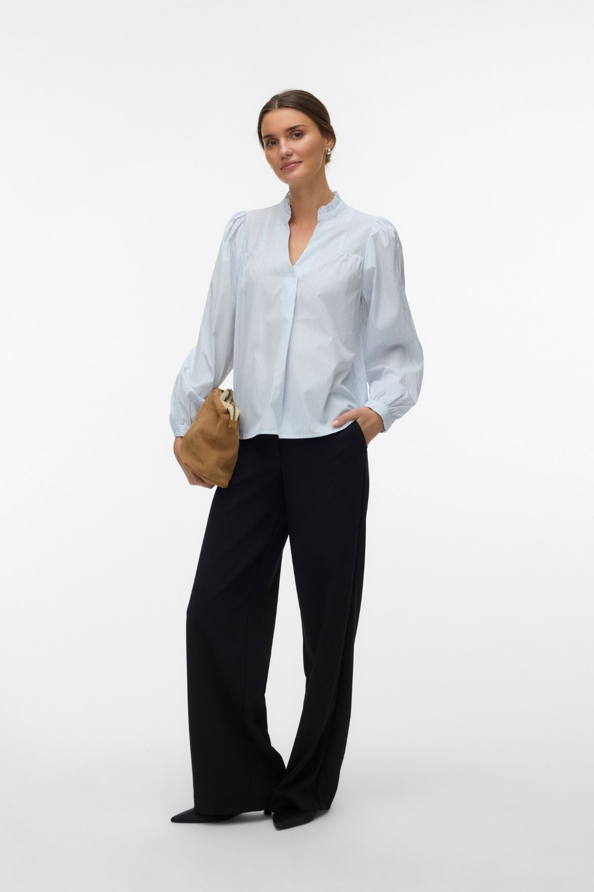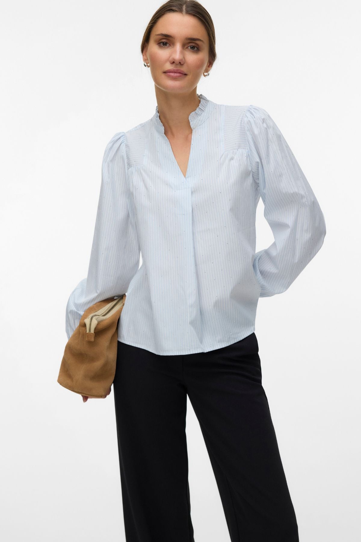 Die wahre Schönheit des Sina Top ist seine unglaubliche Vielseitigkeit. Der ruhige Blauton und die elegante Cloud Dancer-Silhouette machen es zu einem Grundbestandteil jeder Garderobe. Möchten Sie ein leistungsstarkes professionelles Ensemble zusammenstellen? Kombinieren Sie dieses Oberteil mit einem Paar eleganter Performance Pants für einen Look, der im Sitzungssaal Respekt erregt und gleichzeitig unvergleichlichen Komfort bei langen Besprechungen bietet. Wenn Ihr Tag einen lässigeren Ansatz erfordert, passt dieses Oberteil in Kombination mit hochwertigen Kleidungsstücken nahtlos dazu Jeans. Der schmeichelnde Schnitt passt zu verschiedenen Körpertypen und sorgt dafür, dass Sie sich von morgens bis abends sicher und ausgeglichen fühlen. Es ist die ultimative Lösung für die Frau, die ihre Garderobe genauso hart arbeiten muss wie sie.